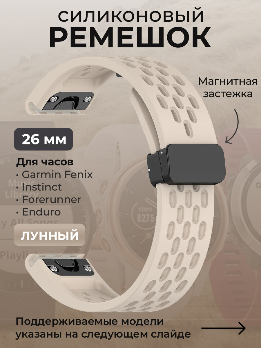 Силиконовый ремешок для Garmin Fenix / Instinct / Forerunner / Enduro, 26 мм, c магнитной застежкой, лунный информация: