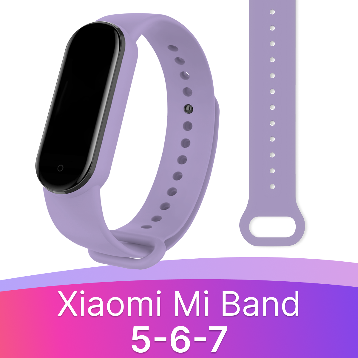 Силиконовый ремешок для смарт часов Xiaomi Mi Band 5, 6 и 7 / Спортивный сменный браслет на фитнес трекер Сяоми Ми Бэнд 5, 6 и 7 / Лавандовый информация: