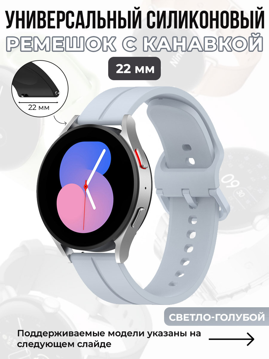 Универсальный силиконовый ремешок с канавкой 22 мм, светло-голубой информация: