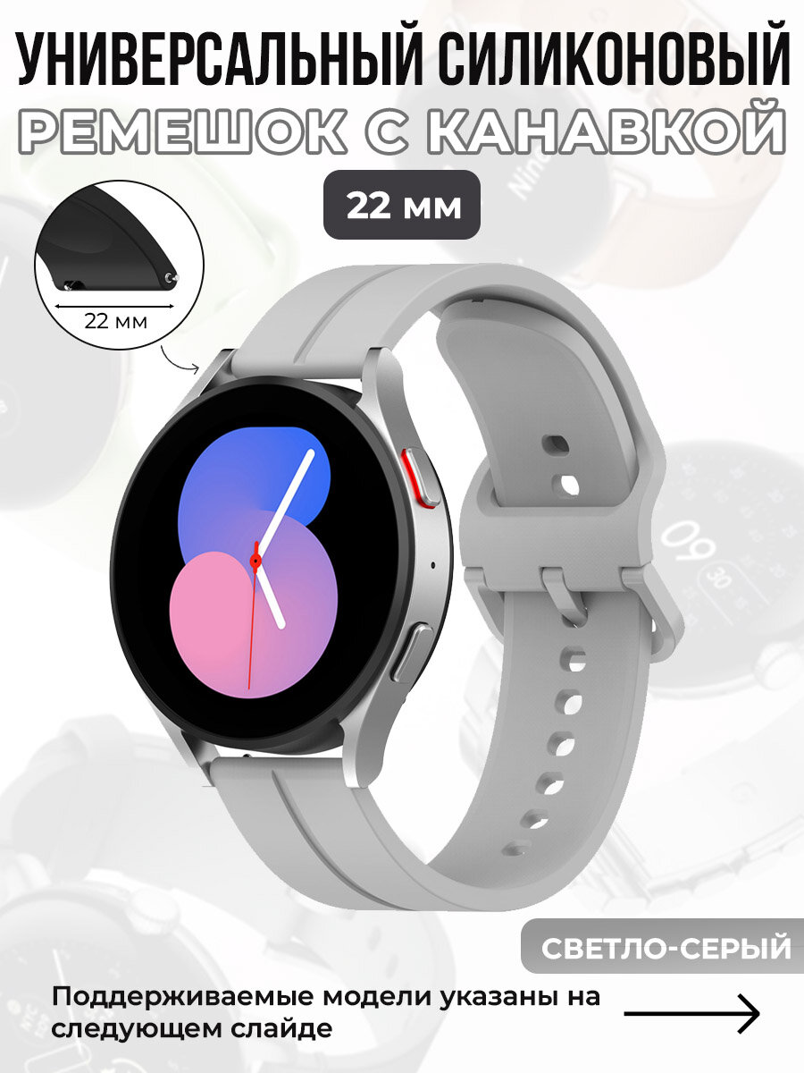 Универсальный силиконовый ремешок с канавкой 22 мм, светло-серый информация: