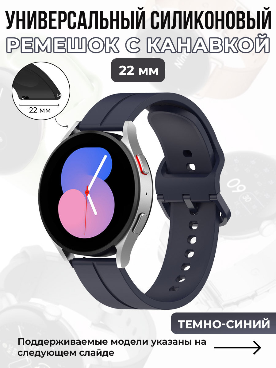 Универсальный силиконовый ремешок с канавкой 22 мм, темно-синий информация: