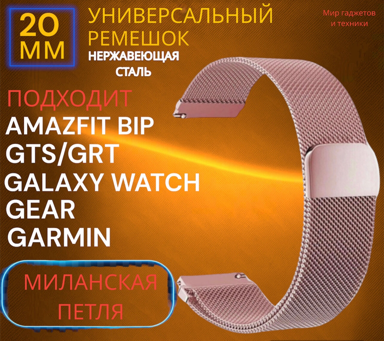 Металлический магнитный ремешок 20 мм Миланская петля серебро для Amazfit Bip /GTR / GTS / Galaxy Watch / Gear / Huawei / Honor / Garmin/розовое-золото информация: