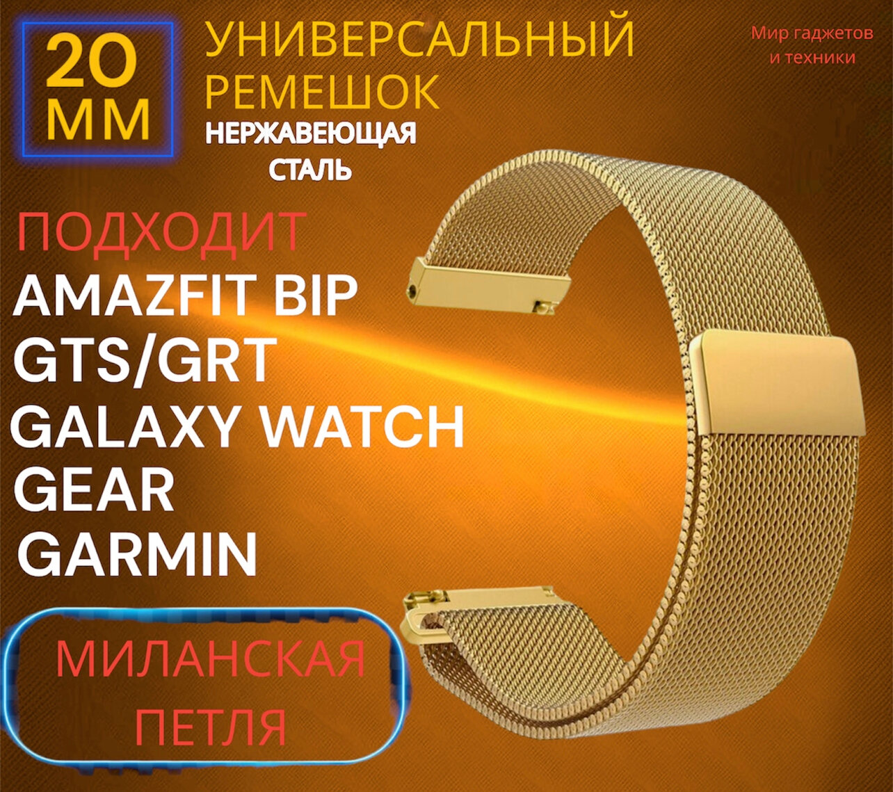 Отзывы на Металлический магнитный ремешок 20 мм Миланская петля серебро для Amazfit Bip /GTR / GTS / Galaxy Watch / Gear / Huawei / Honor / Garmin/золото