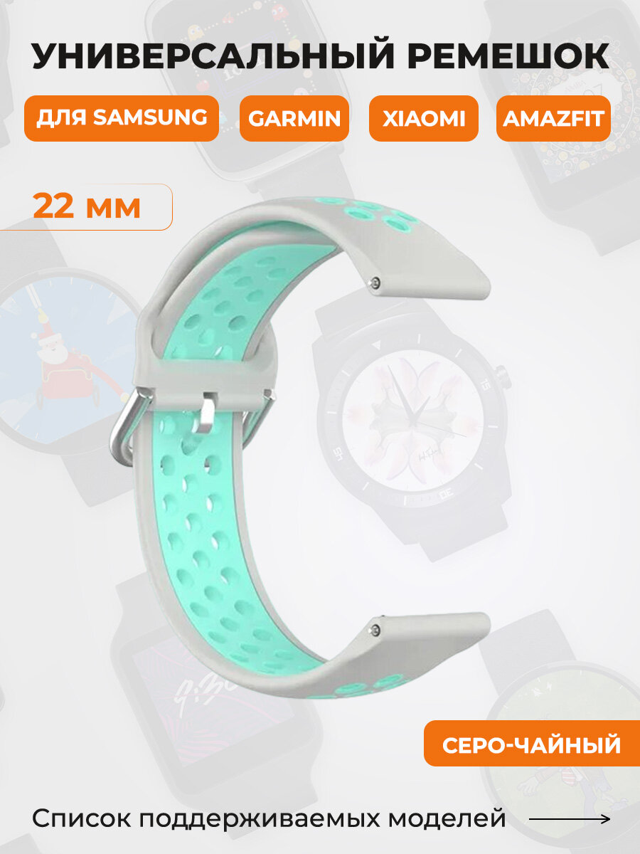 Универсальный ремешок для Samsung, Garmin, Xiaomi, Amazfit, 22 мм, серо-чайный информация: