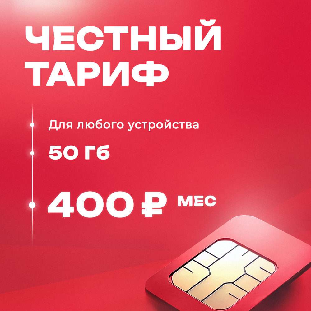 Сим карта c интернетом и раздачей, 50ГБ за 450р/мес
