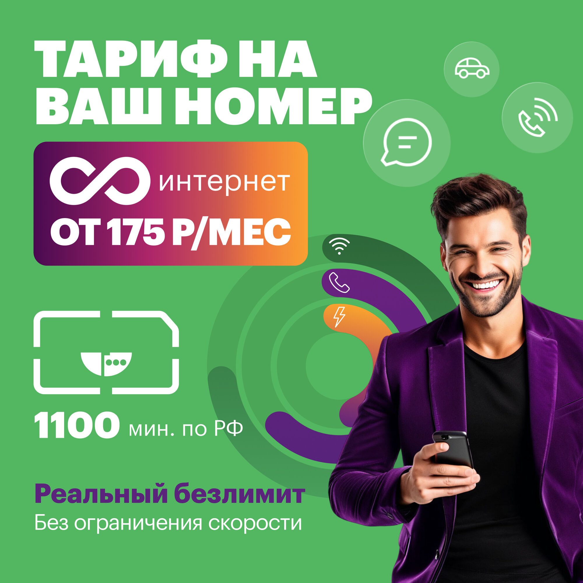 Сим карта sim безлимитный интернет от 175руб мес информация: