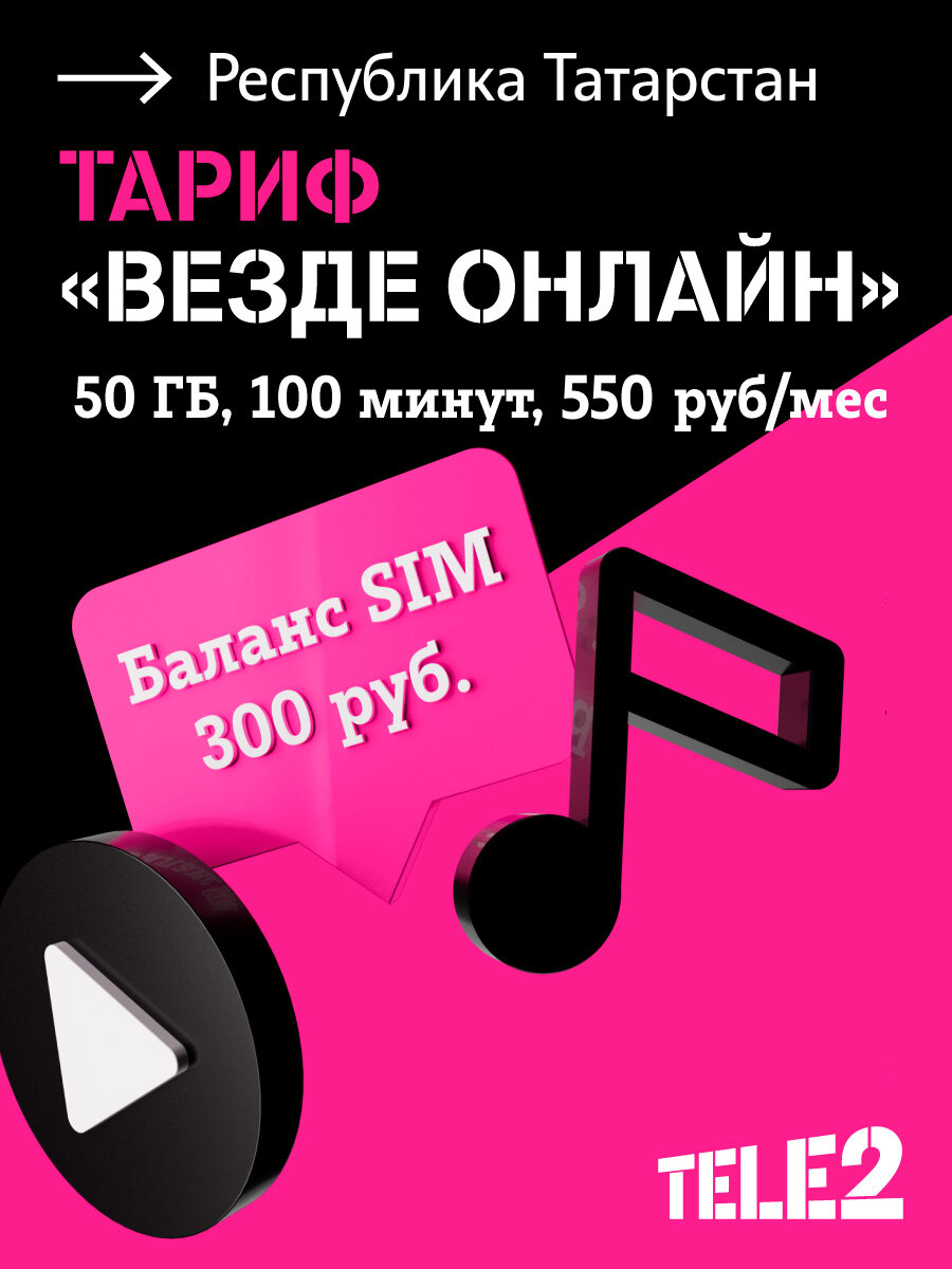 Сим-карта Tele2 для Республики Татарстан, Везде онлайн, баланс - 300 рублей информация: