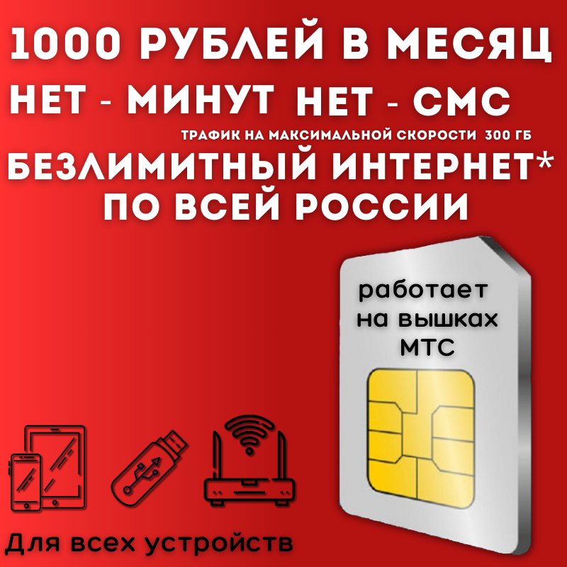 SIM-карта Безлимит по РФ с Wi Fi, для всех устройств, 990 р / в месяц/ сим карта