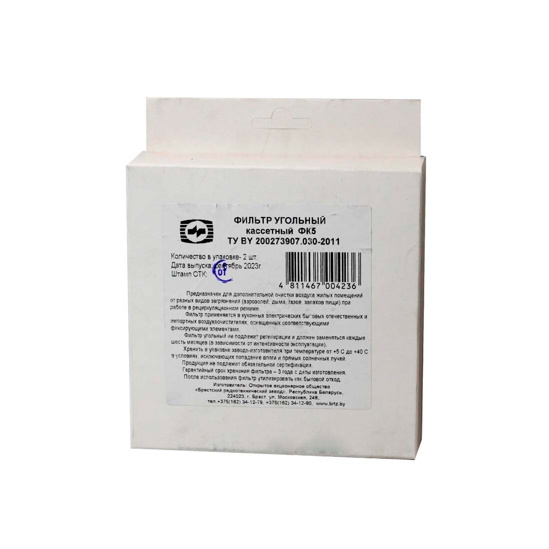 Фильтр угольный для вытяжки ФК5, диаметр 120 мм, высота 10 мм, 2 шт информация: