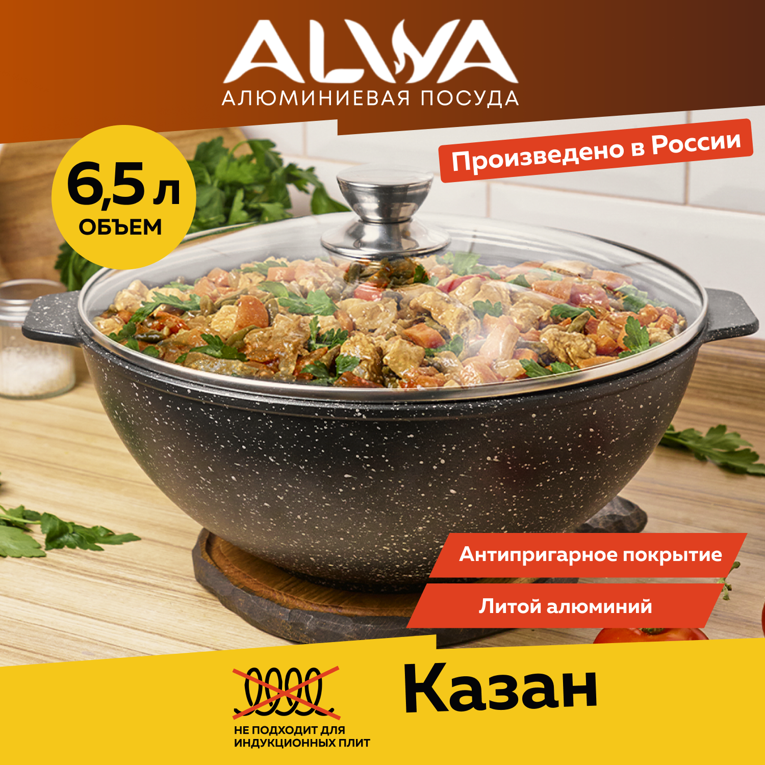 Казан для плова 6,5 литра ALWA с крышкой литой антипригарный информация: