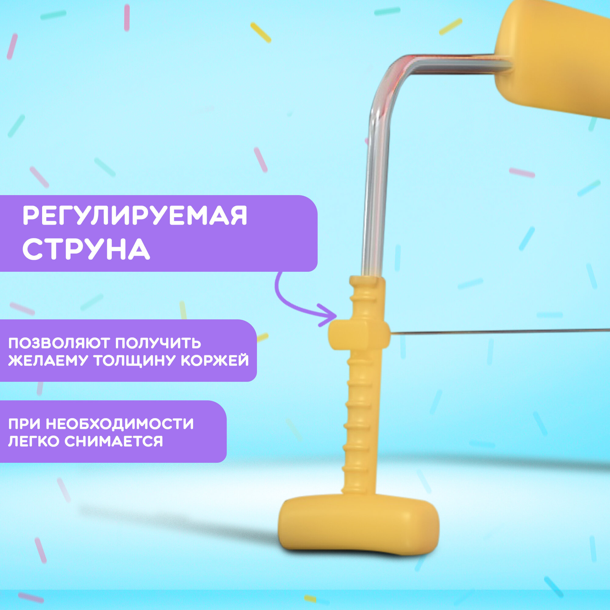 | Дополнительная информация | Как им пользоваться? Расположите изделие рядом с коржом. Отрегулируйте положение струны по высоте в соответствии с желаемой толщиной коржей. Придерживая корж, разрежьте его целиком. |