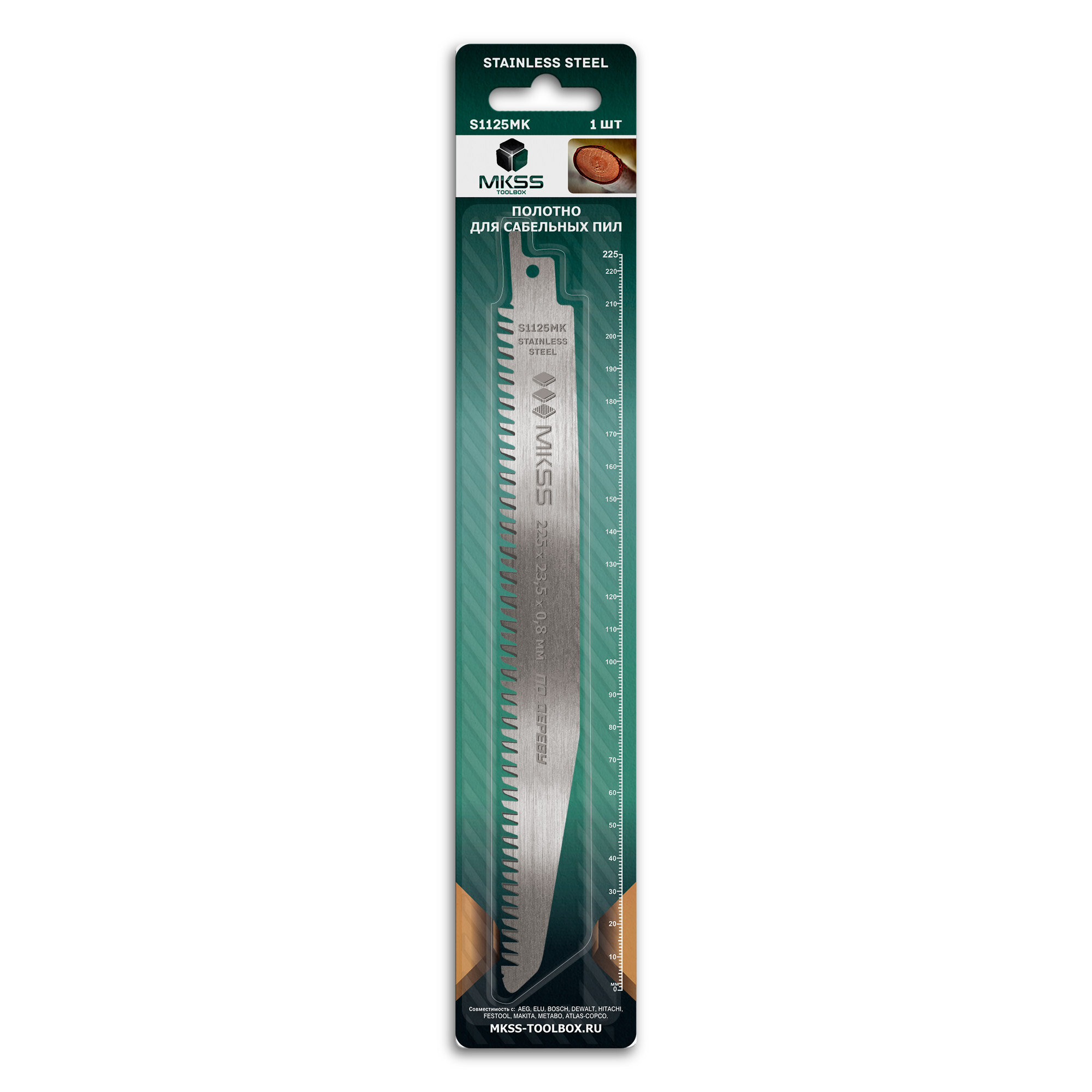 10 цен на Полотно по живой древесине для сабельной пилы, пилки для сабельной пилы 225 мм/0.8 мм, 1 штукa, S1125MK, MKSS