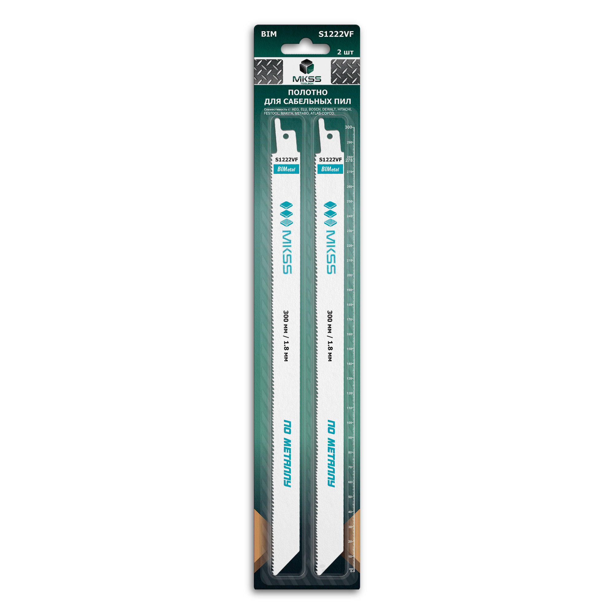 Полотно для сабельной пилы по металлу S1222VF, полотно для сабельной пилы 300 мм/1.8 мм, 2 штуки, MKSS информация: