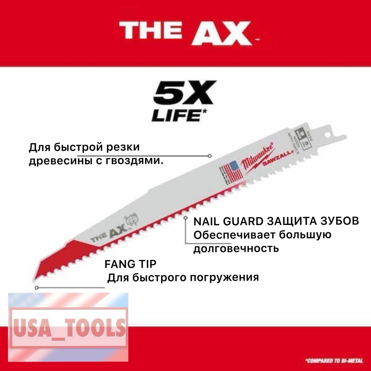 Пилки/полотна для сабельной пилы по дереву с гвоздями 228мм 5 TPI 10шт в блистере Milwaukee 48-00-1026 информация: