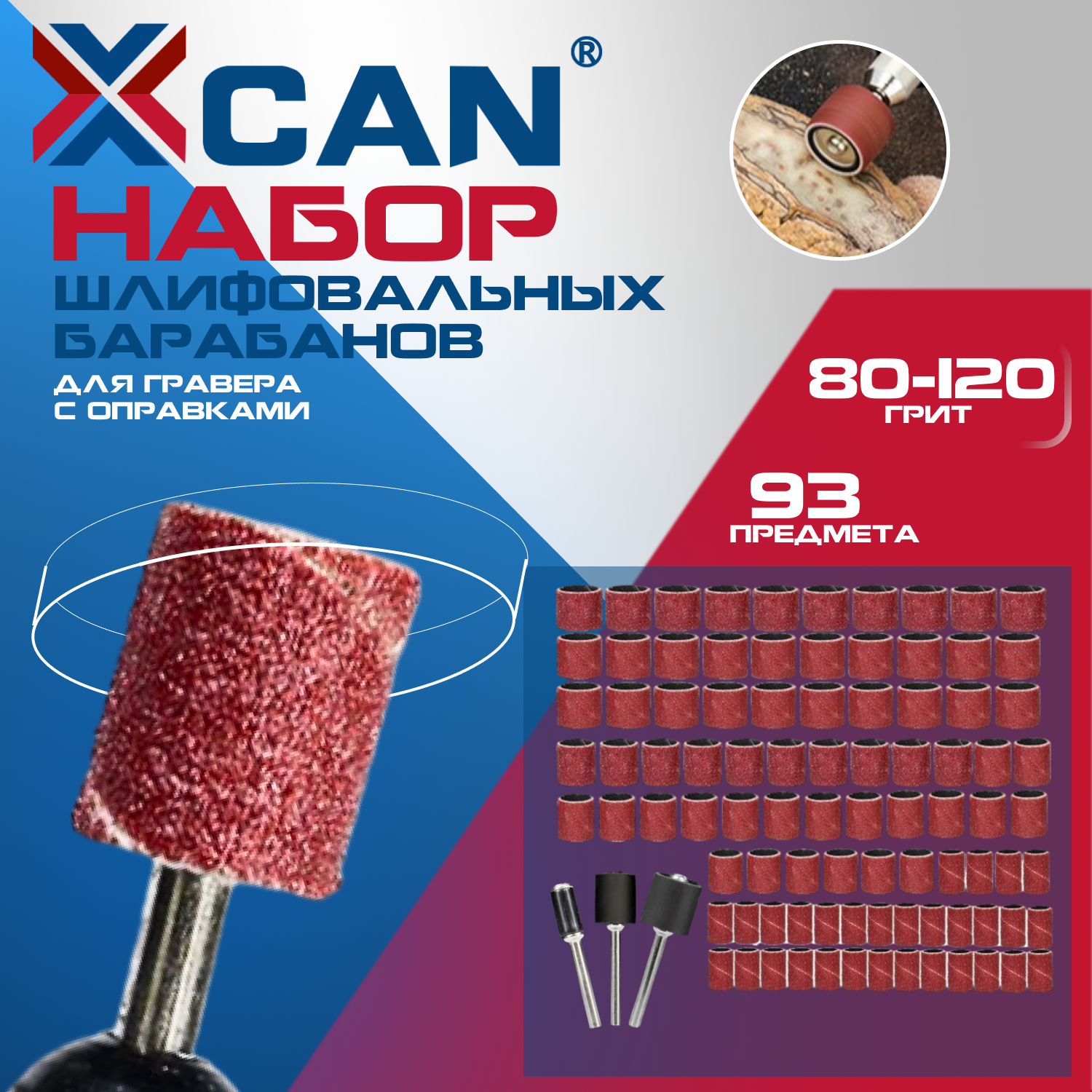 Набор шлифовальных барабанов для гравера XCAN, 93 шт. информация: