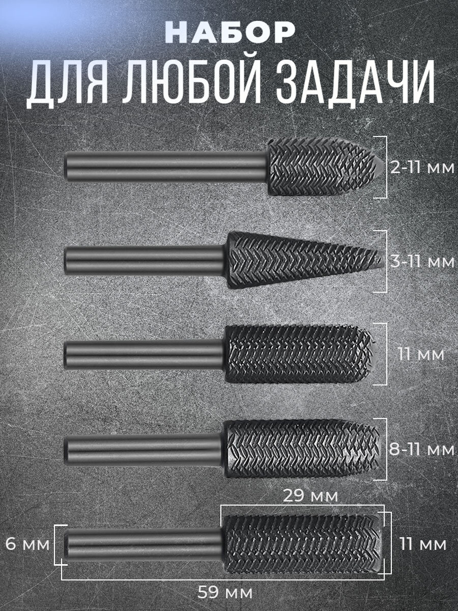 Набор шарошек по металлу, борфреза на дрель гравер информация:
