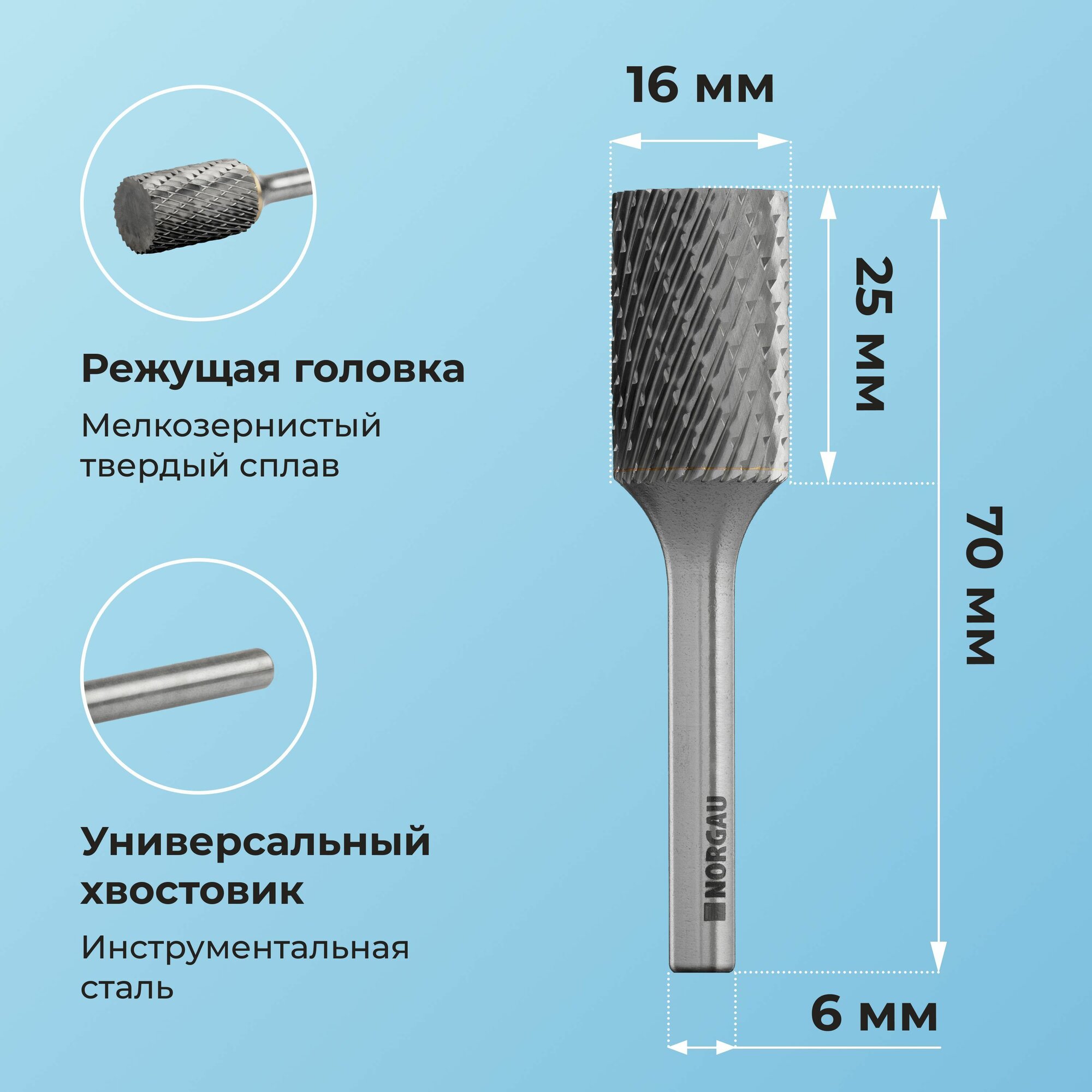 Отзывы на Борфреза твердосплавная NORGAU Industrial цилиндрическая 16 мм, форма A, DCM