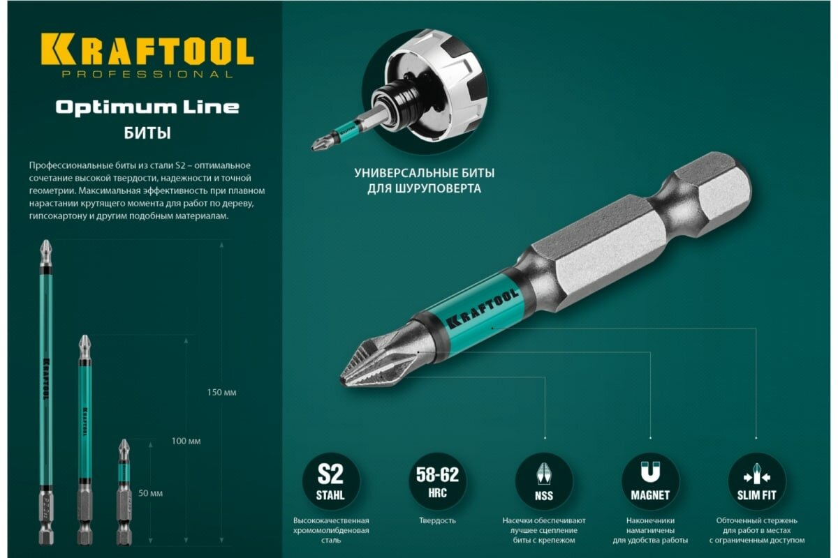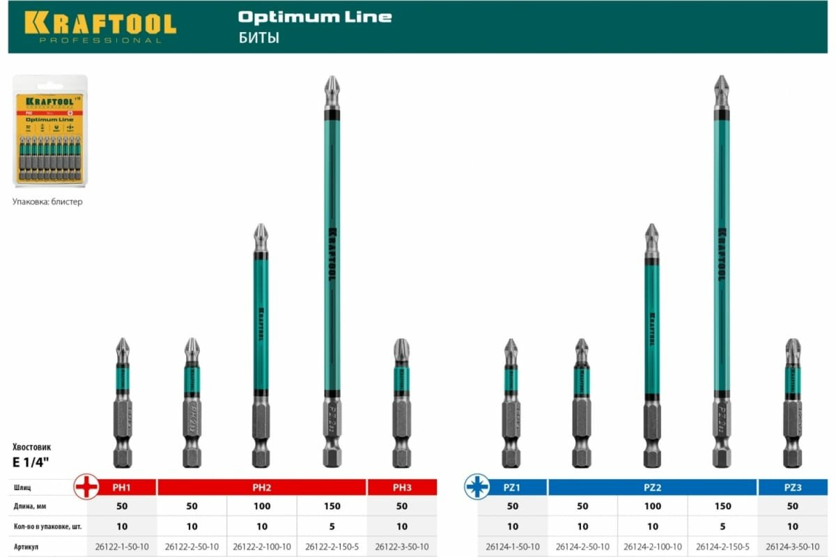 Биты KRAFTOOL Optimum, PH2, 50 мм, 10 шт (26122-2-50-10) информация: