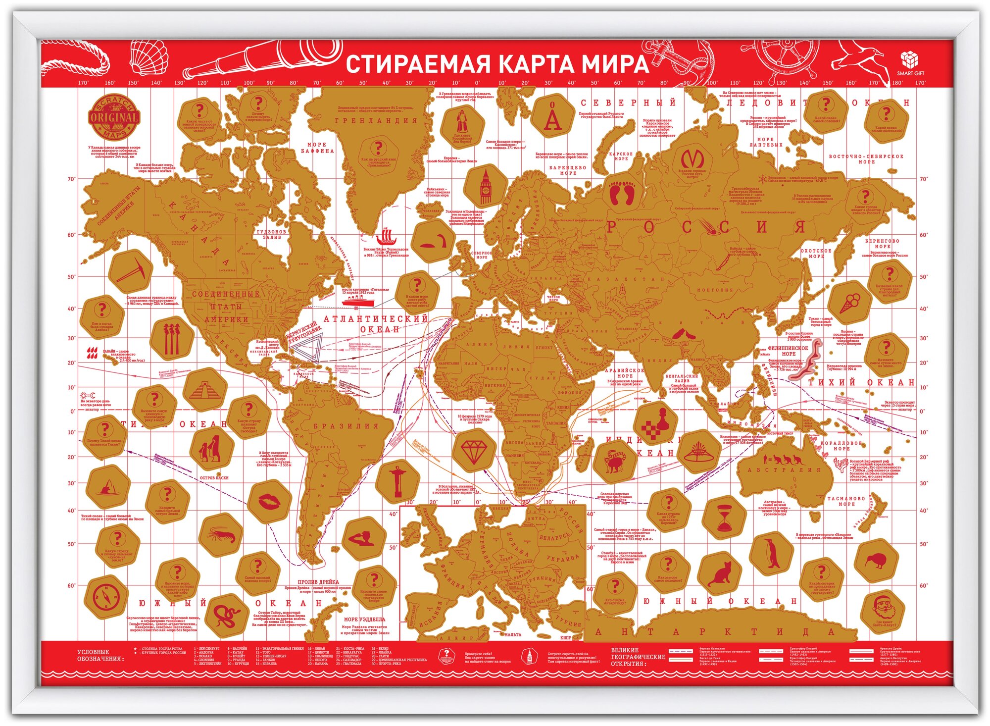 10 цен на Скретч карта мира Smart Gift Present Edition" Красная А2, 59х42см, в прочном цилиндрическом тубусе