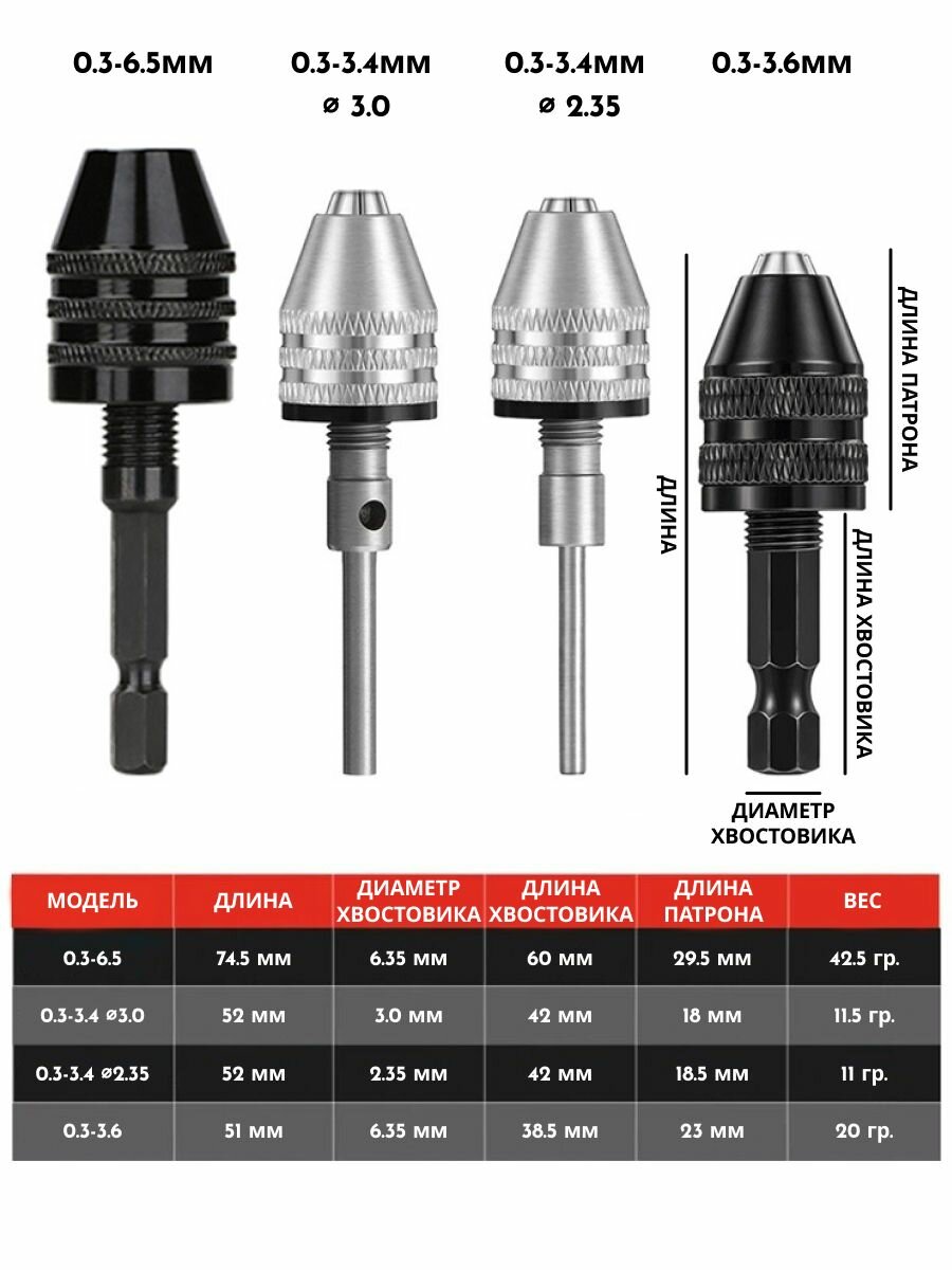 Патроны быстрозажимные для шуруповерта, дрели 0,3-6,5 мм информация: