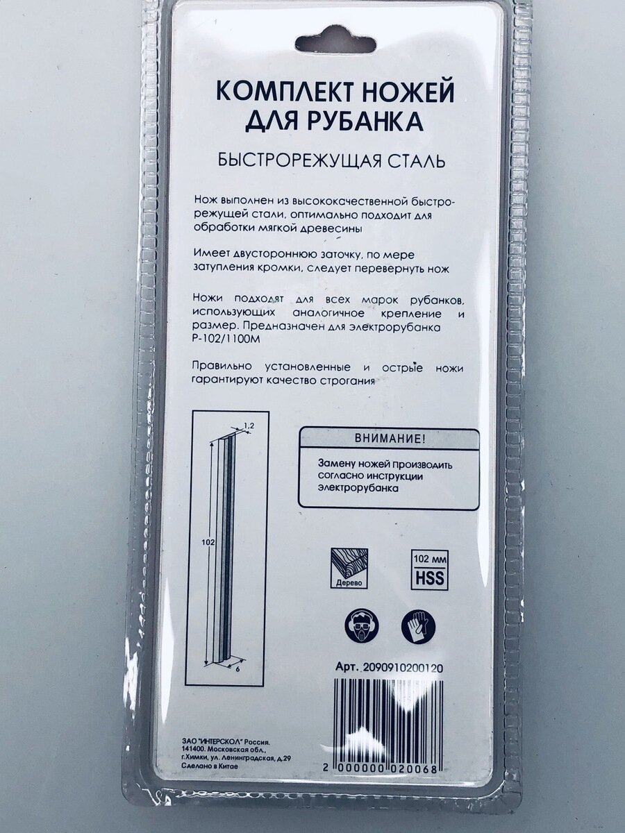 Комплект ножей для рубанка 102 мм Интерс №429 информация: