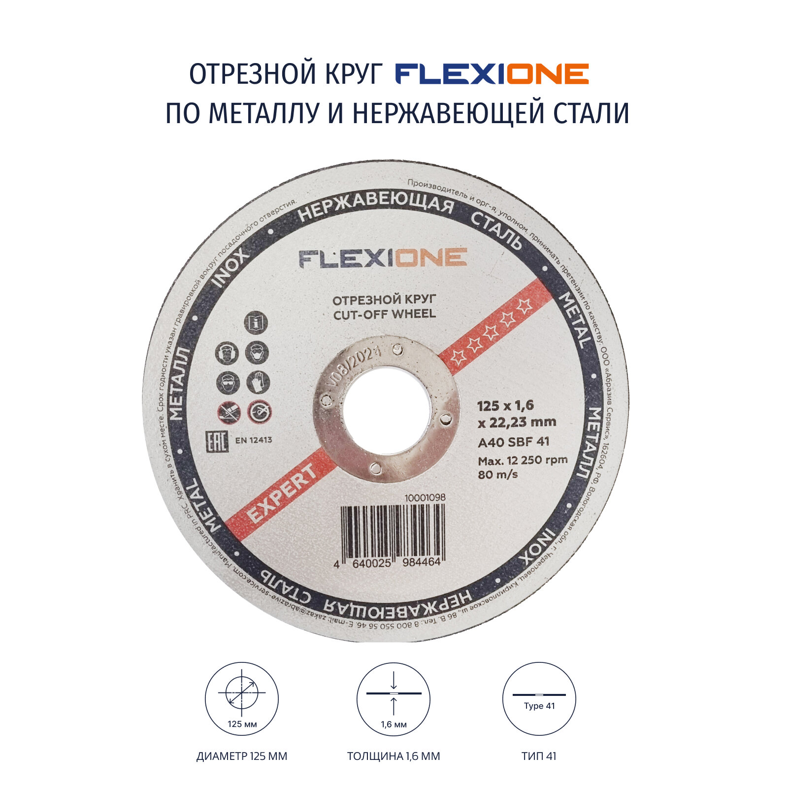 Отрезной круг металл/нержавейка 125х1.6х22,23 тип 41 "Flexione Expert" информация: