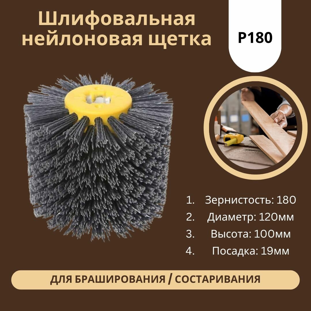 Шлифовальная щетка валиковая нейлоновая для браширования / состаривания древесины 120*100 для станков с валом 19 мм, зернистость 180 (У) информация: