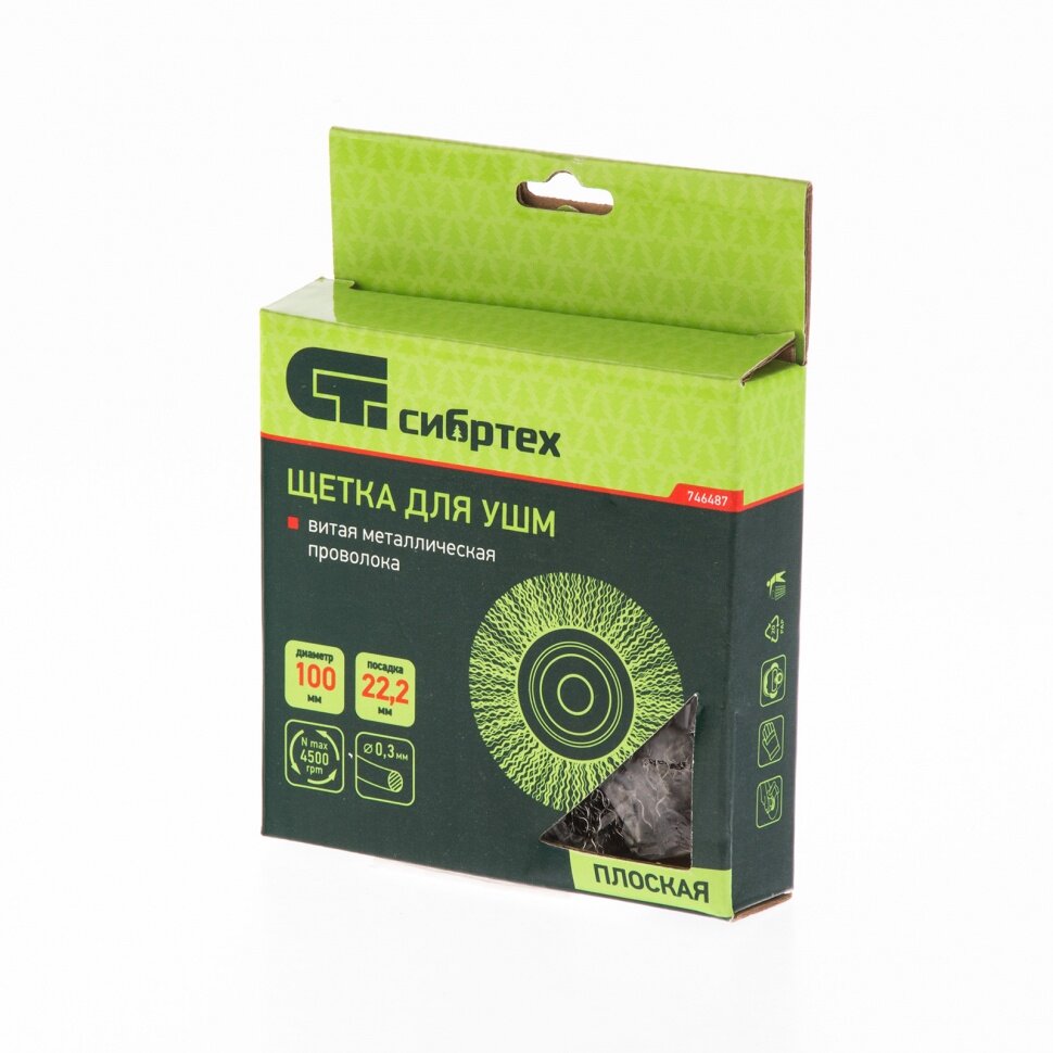 Щетка для УШМ, 100 мм, посадка 22.2 мм, плоская, витая проволока 0.3 мм Сибртех информация: