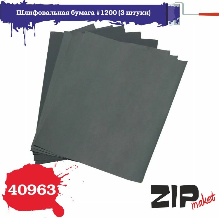 Шлифовальная бумага зернистость 1200, 3 штуки, ZIPmaket, Z-40963 информация:
