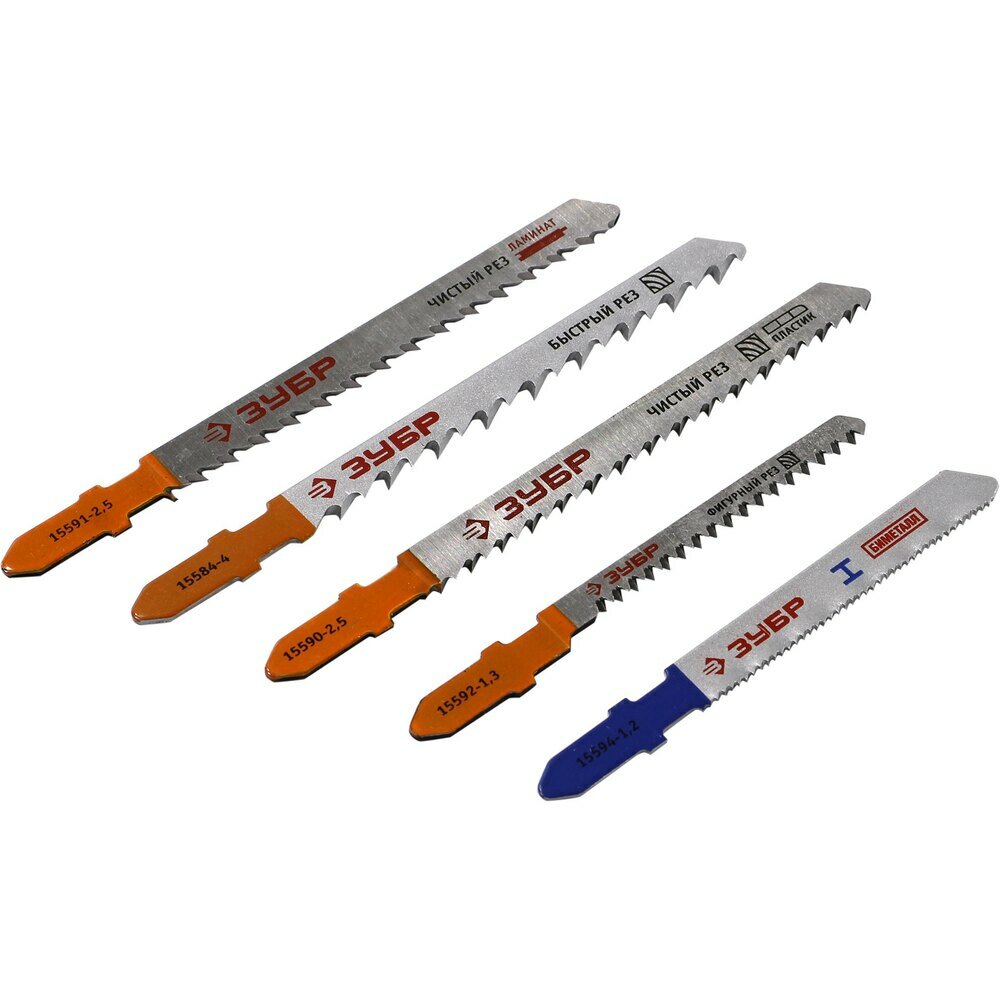 ЗУБР T-хвост., по дереву и металлу, пластик. бокс, 5 шт, набор полотен для лобзика (15580-H5)