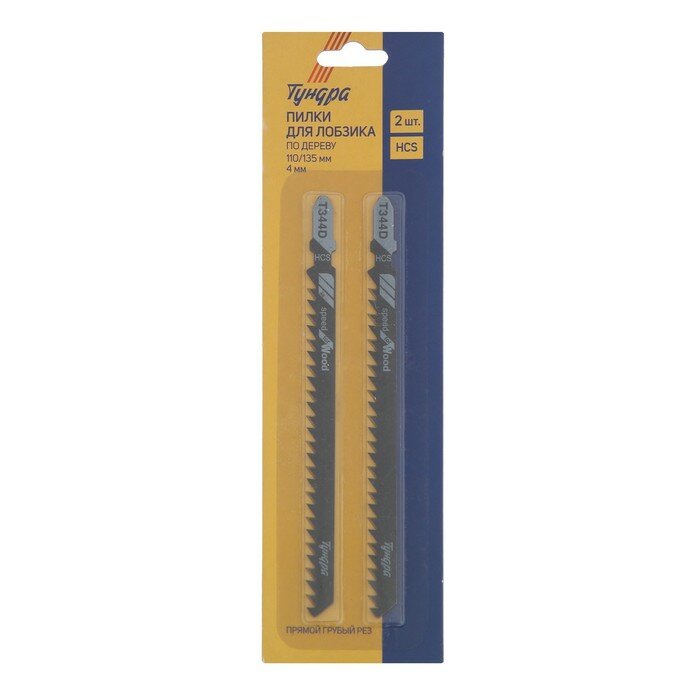 Пилки для лобзиков тундра, по дереву, прямой грубый рез, HCS, 110/135 х 4 мм, 2 шт. информация: