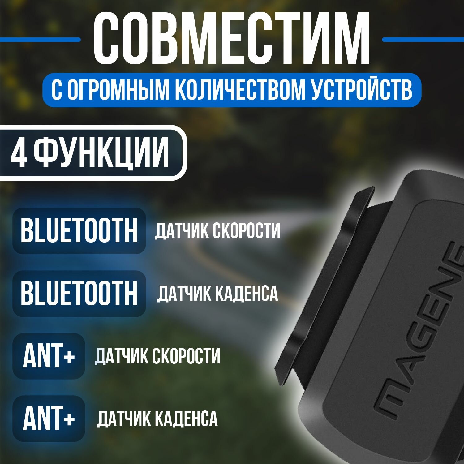 Датчик скорости и каденса для велосипеда Magene S3+ Bluetooth/ANT+ / Геомагнитный датчик водонепроницаемый информация:
