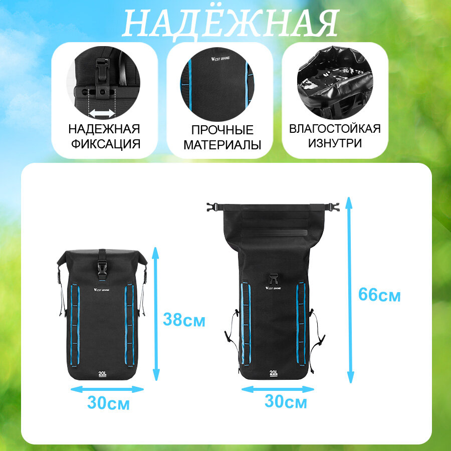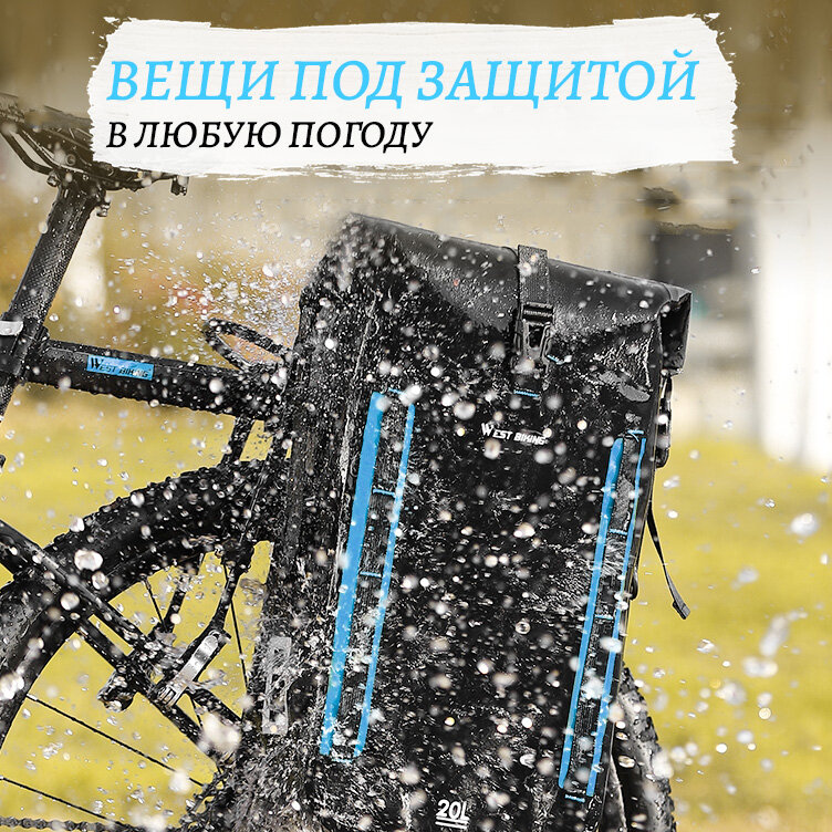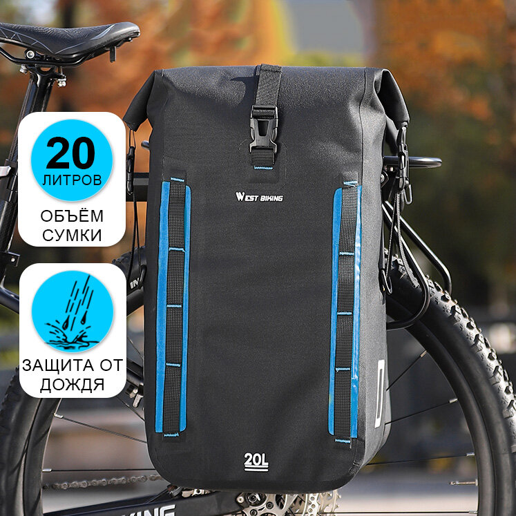 10 цен на Сумка для велосипеда на багажник, велоштаны 20л West Biking черная/синяя