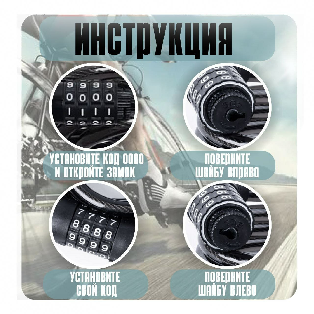 Замок велосипедный тросовый усиленный 12x1200мм кодовый, синий информация: