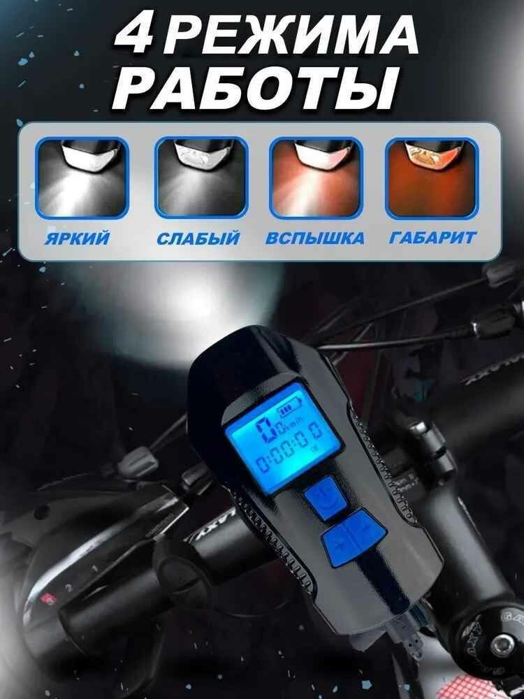 Аккумуляторный светодиодный фонарь для велосипеда с гудком, спидометром и зарядкой USB от GadFamily_Shop информация: