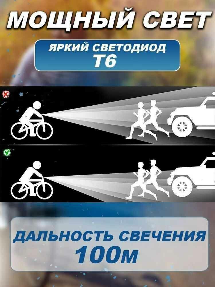 Мощный передний фонарь для велосипедов, до 12-ти часов работы