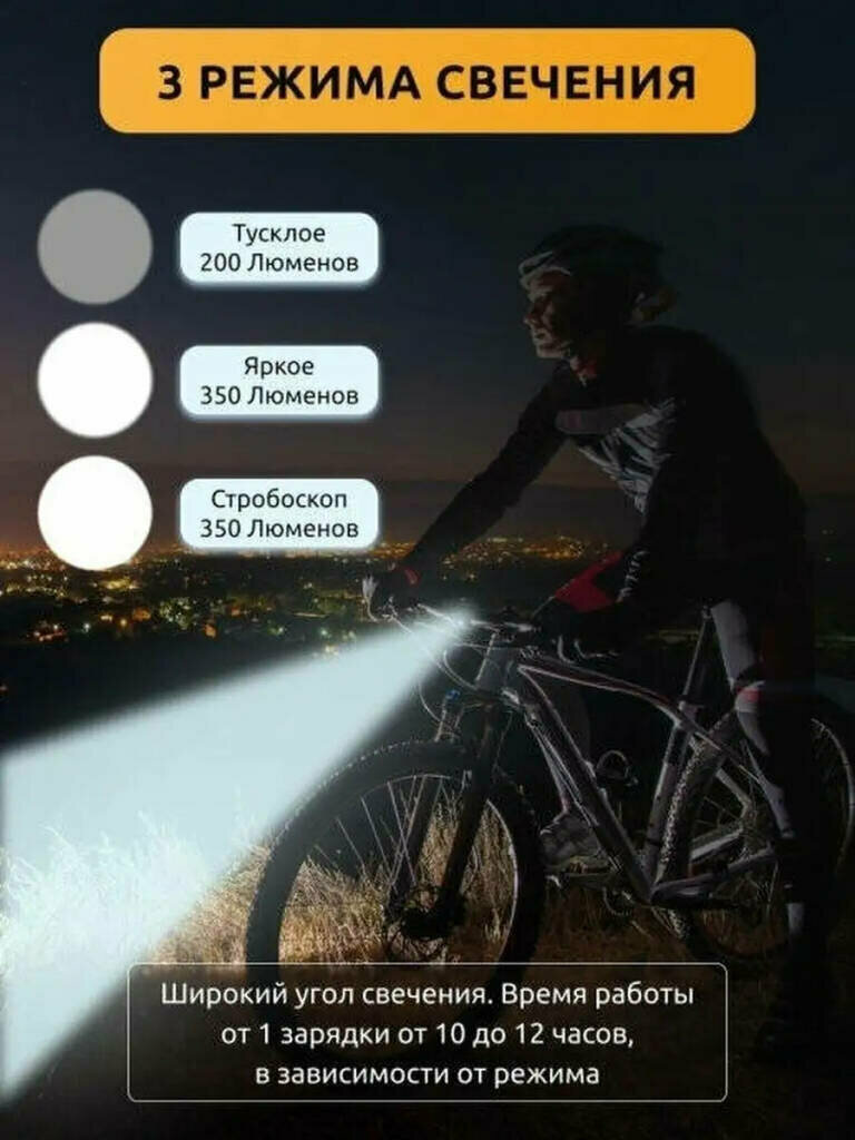 Мощный передний фонарь для велосипедов, до 12-ти часов работы