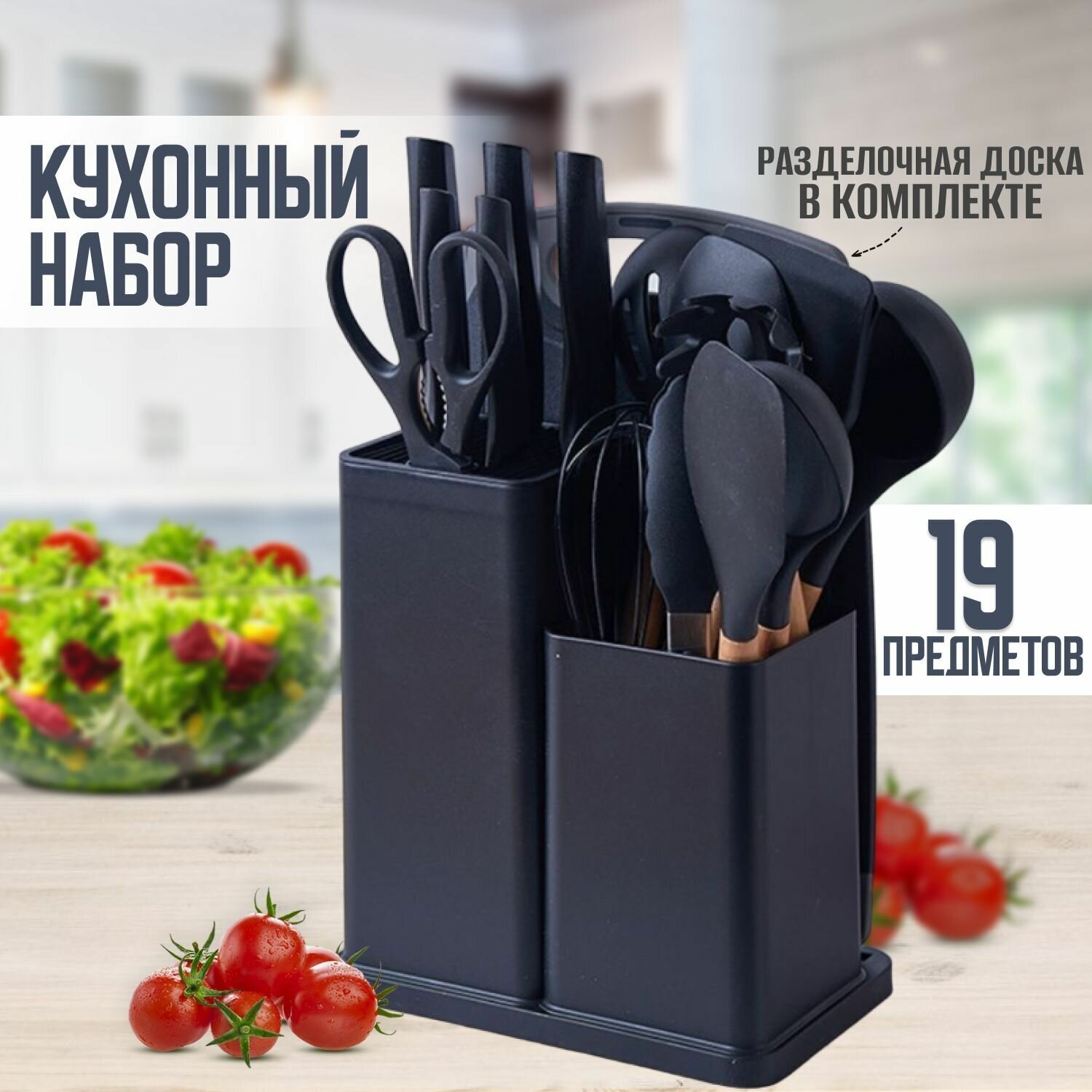 10 цен на Набор кухонных принадлежностей kosmo. store, силиконовые приборы, ножи, набор ножей, кухонная навеска, 17 предметов, чёрный