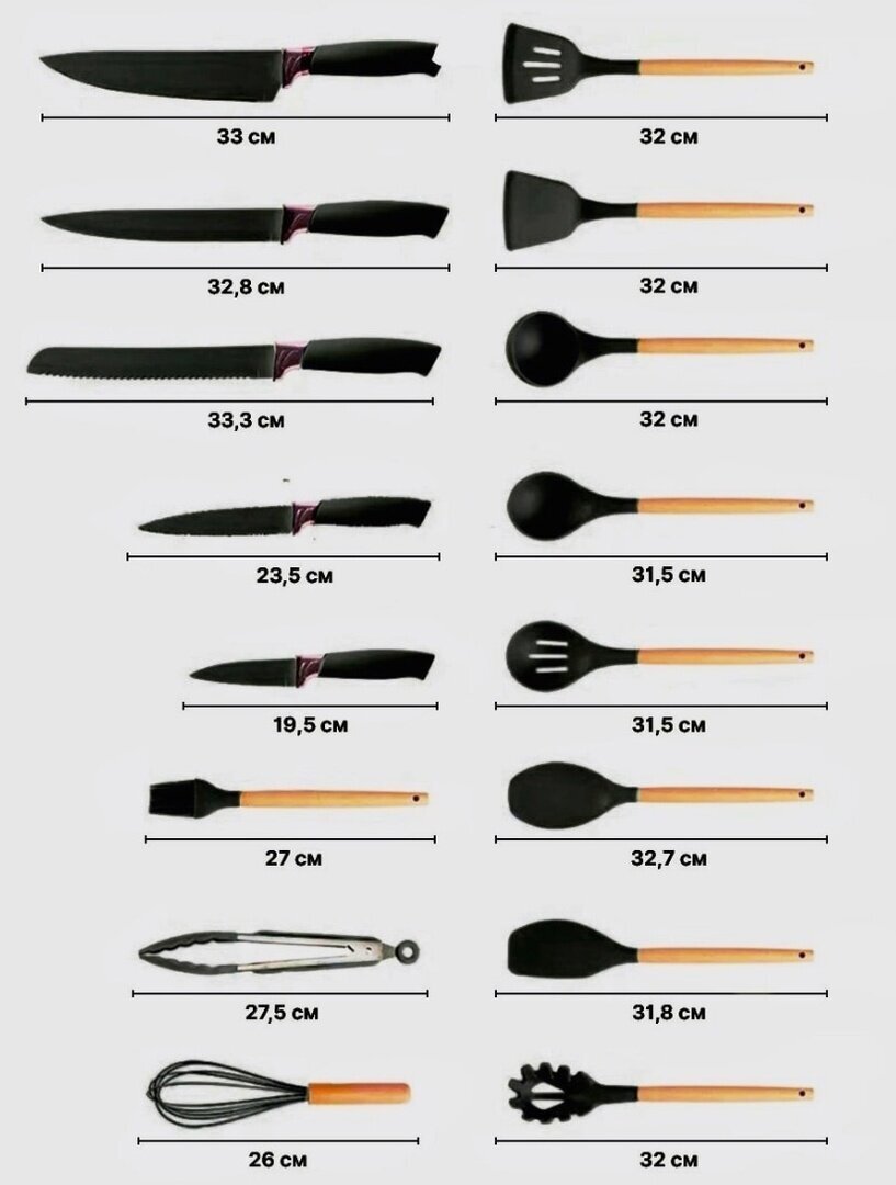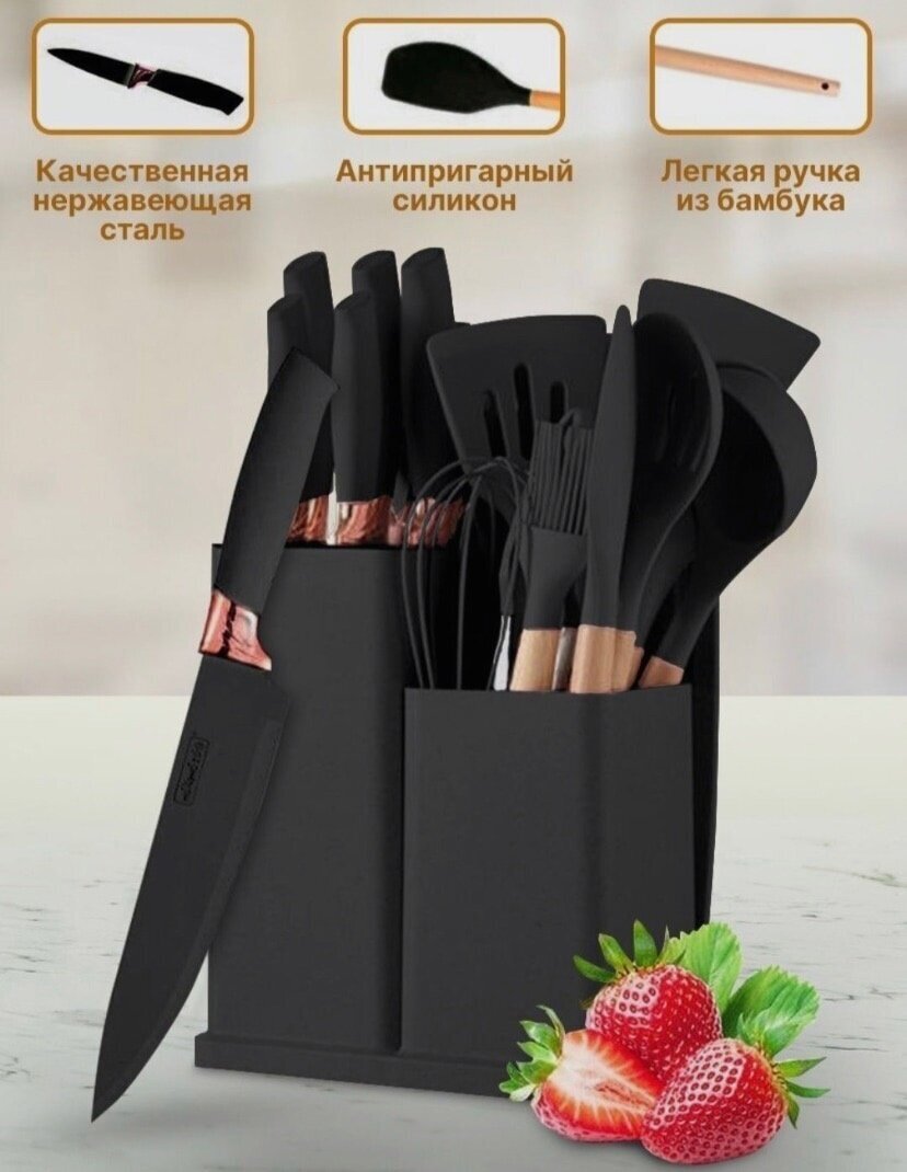 Отзывы на Набор кухонных принадлежностей kosmo. store, силиконовые приборы, ножи, набор ножей, кухонная навеска, 17 предметов, чёрный