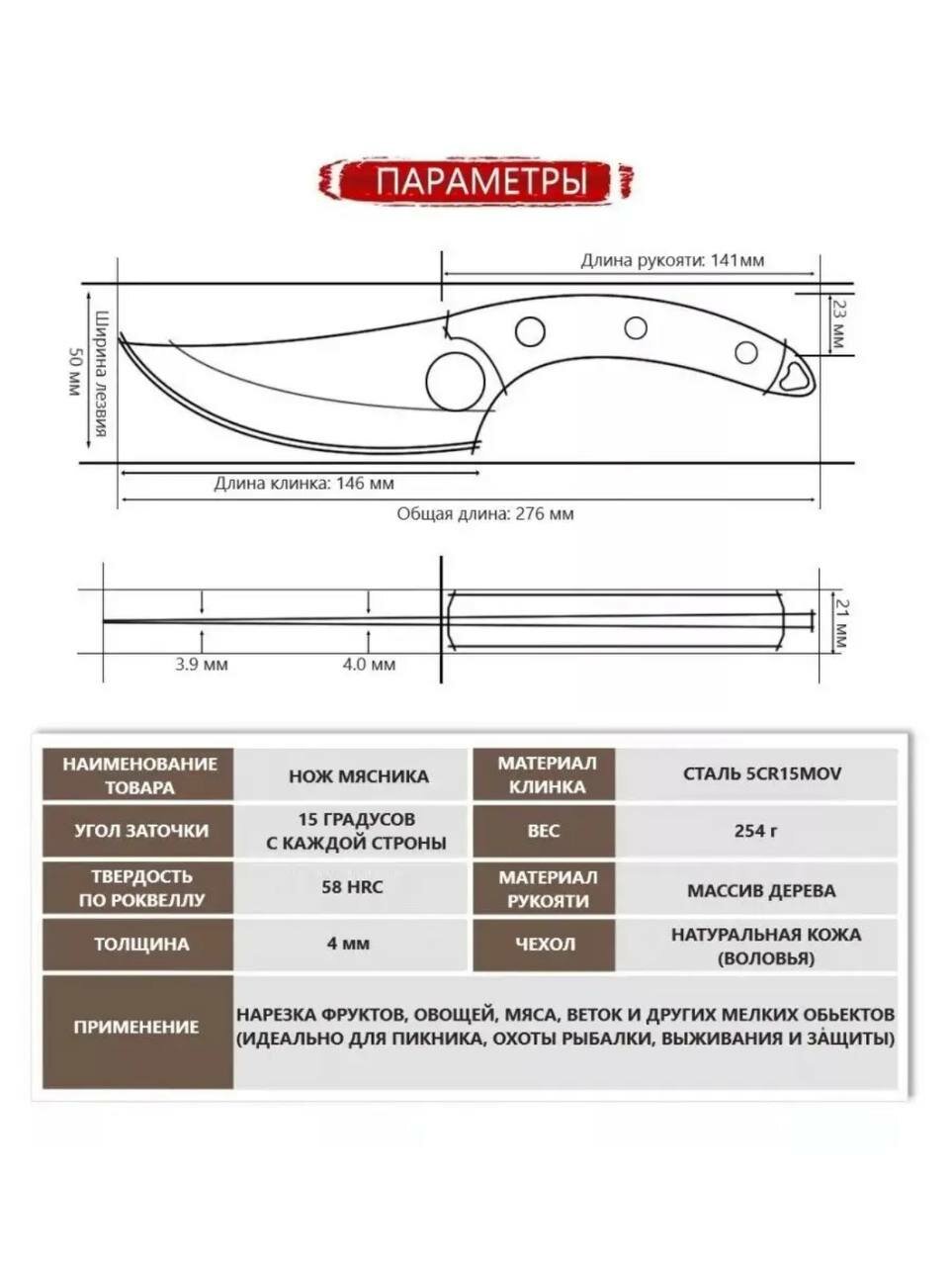 Нож для мясника с футляром / Подходит для охоты на открытом воздухе и убоя кожи информация: