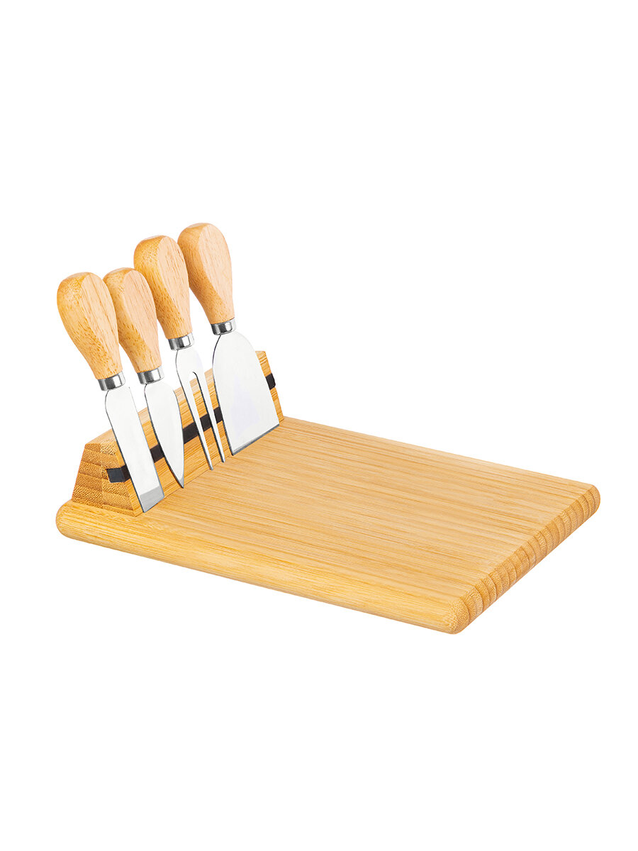 | Дополнительная информация | Набор 5 предметов для сервировки сыра 24*17*6 см, с магнитным держателем, размер вилки 13*3*1,6 см, размер ножа-лопатки для мягких сыров 12,5*4,8*1,6 см, размер ножа-лопатки с боковым лезвием для полутвердых сыров 12,8*3*1,6 см, размер листовидного ножа для твердых сыров 12*3*1,6 см |