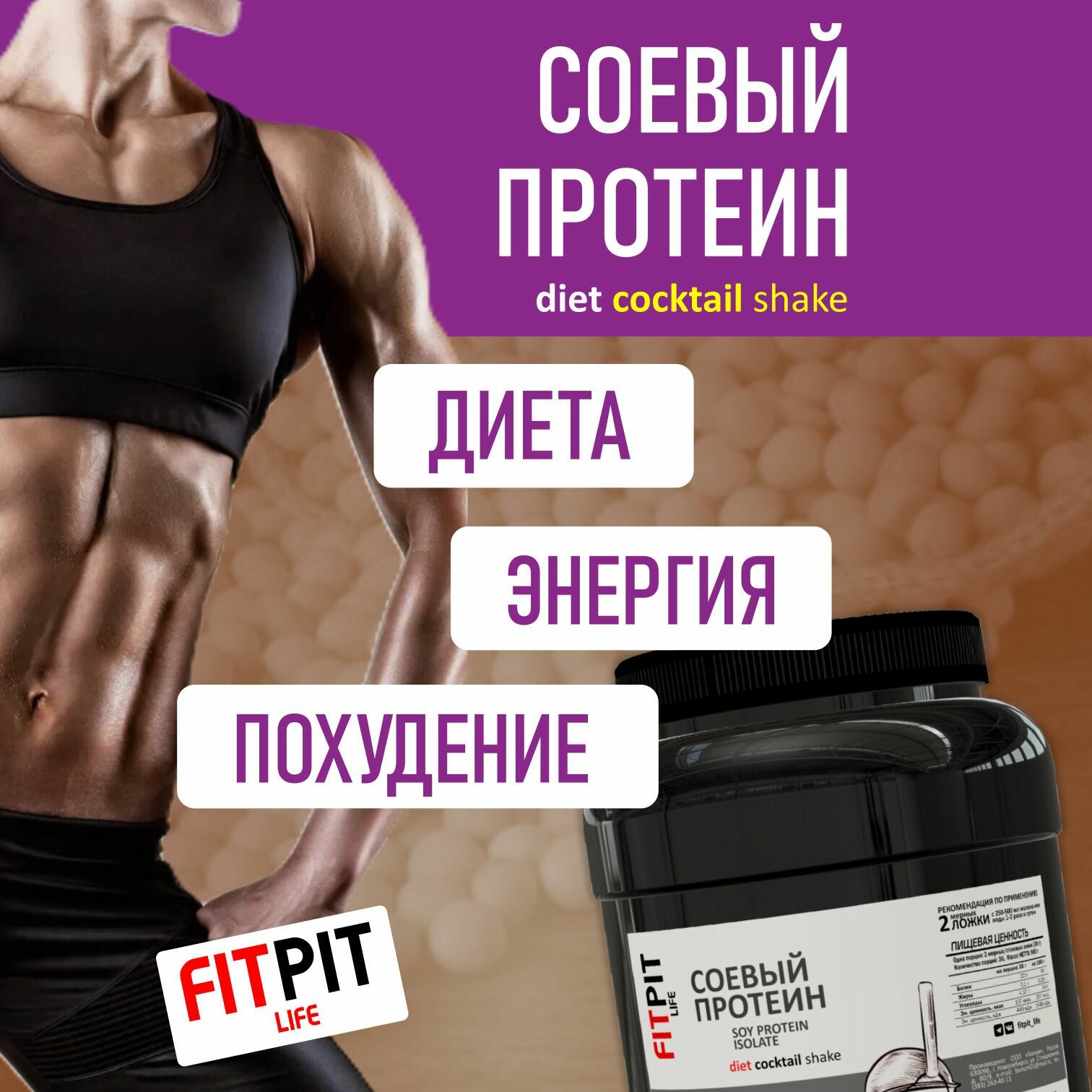10 цен на FITPIT Соевый протеин (Изолят соевого белка) без добавления других растительных белков 300 гр Шоколад