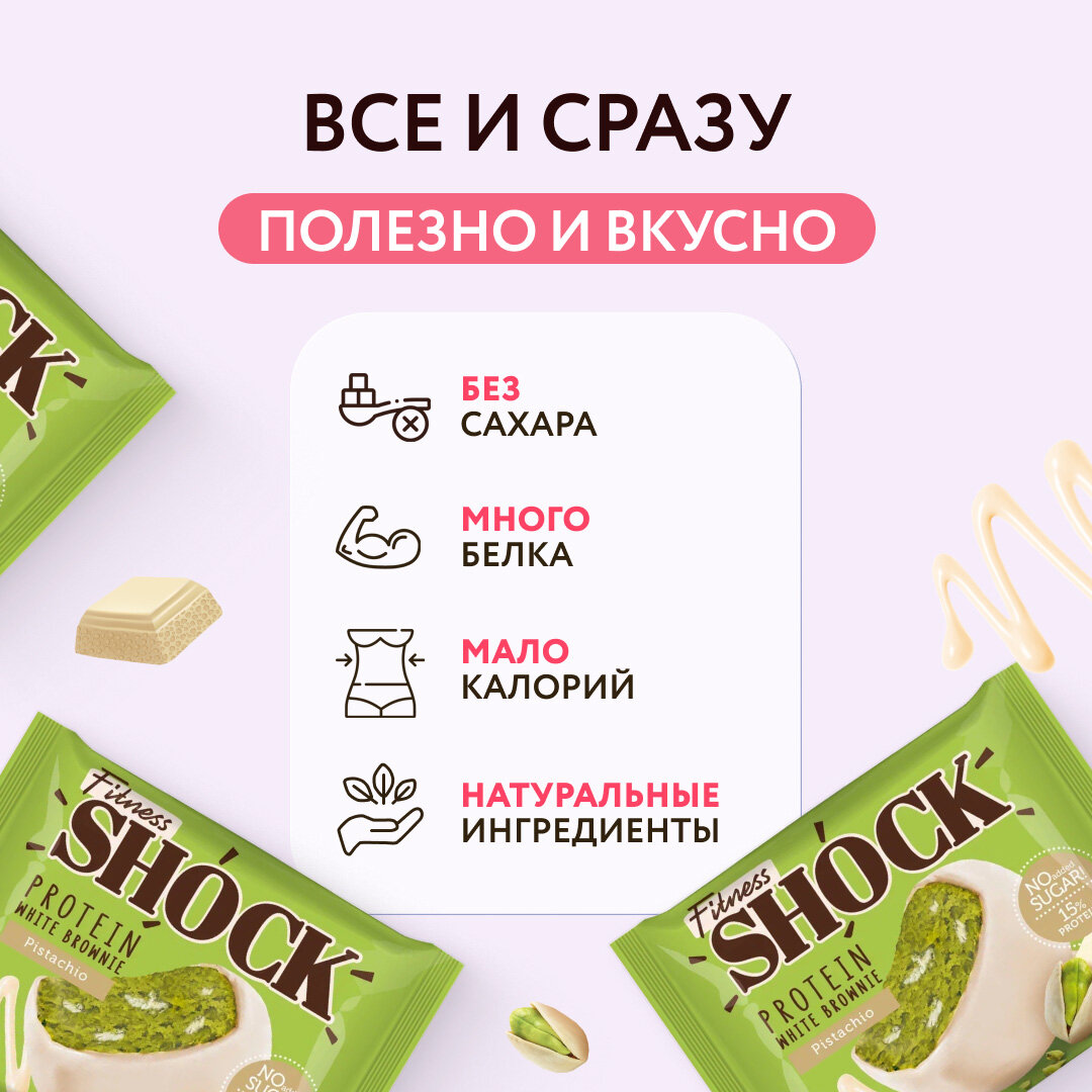 10 цен на Печенье протеиновое FITNESSHOCK Брауни Белый шоколад и фисташки, 10 шт. по 50 г в шоу-боксе, 27668