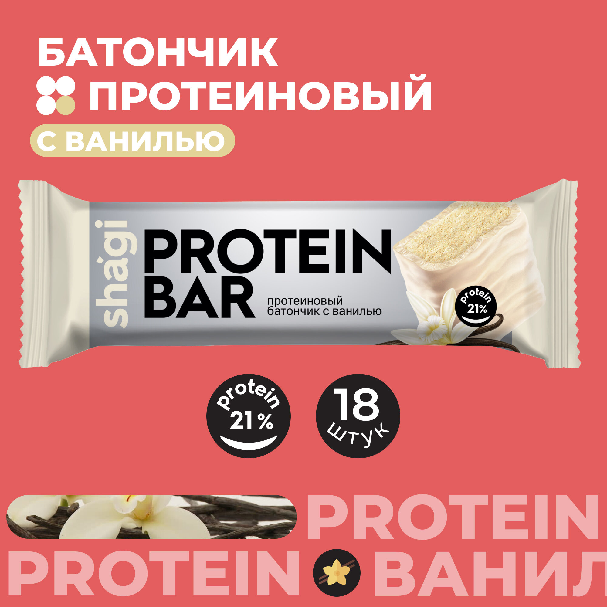 10 цен на Батончик протеиновый Shagi Ваниль, 40 гр х 18 шт, спортпит, пп, полезные сладости, спорт, десерты