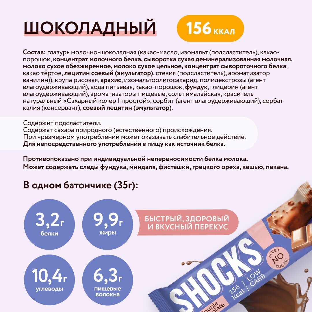 10 цен на Батончики без сахара SHOCKS Шоколадный, шоколад, FitnesSHOCK г, 12 шт