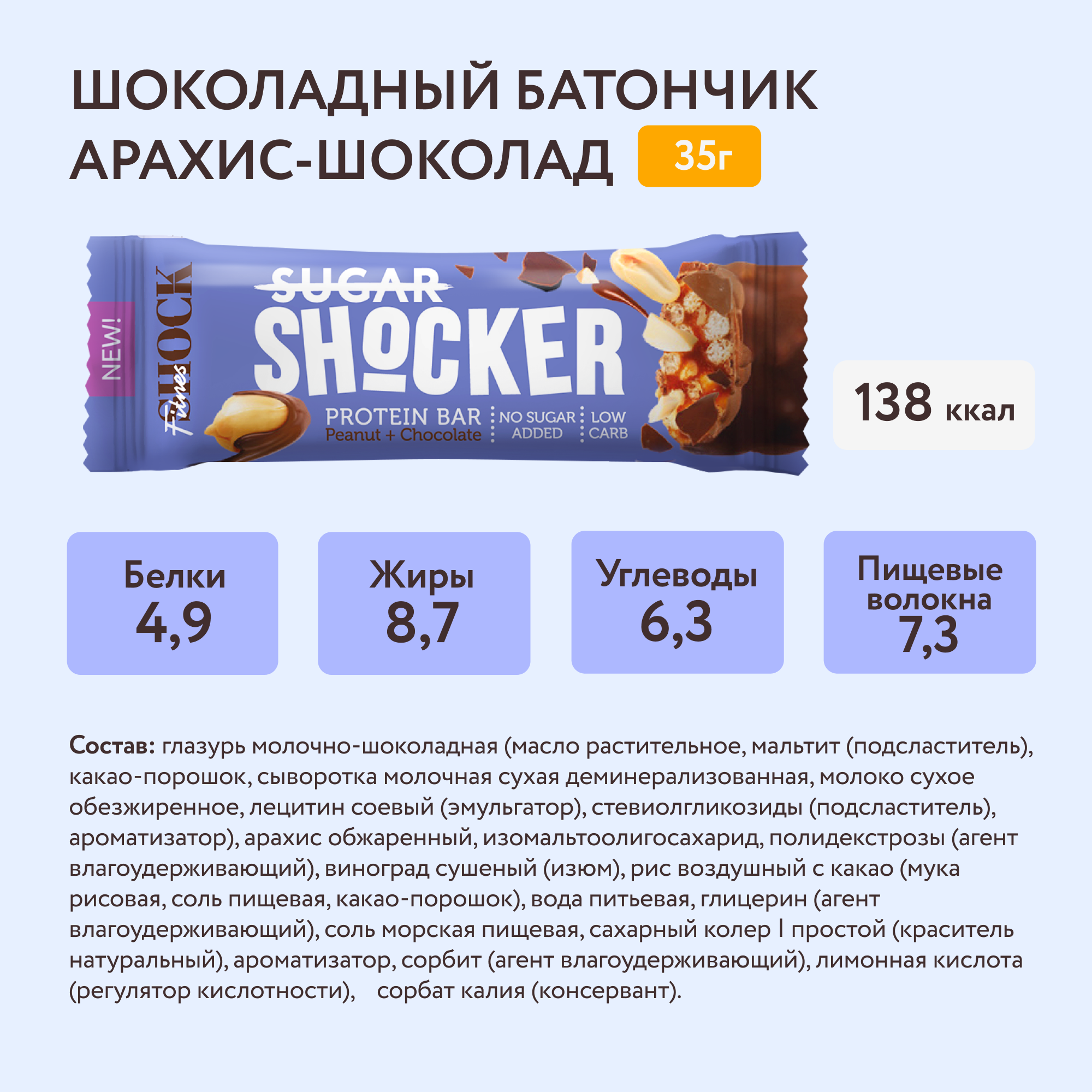 10 цен на Батончики без сахара Shocker Арахис-шоколад без сахара FitnesSHOCK, 35 гр х12 шт