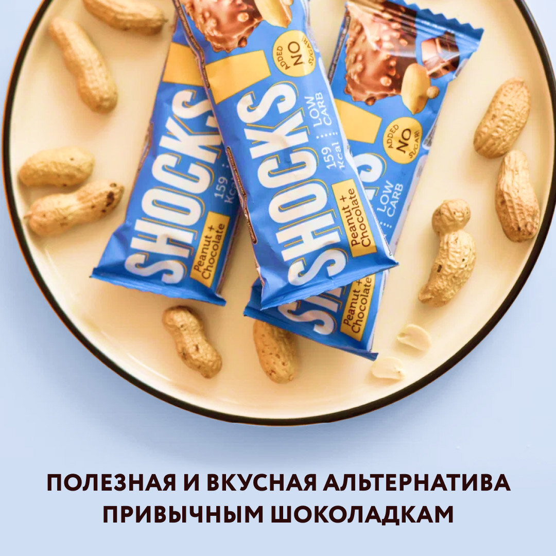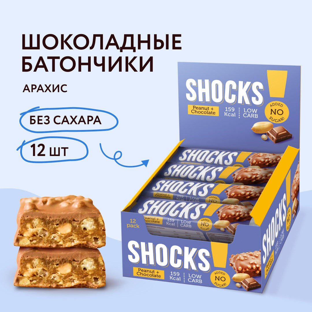 10 цен на Батончики без сахара SHOCKS Арахисовый, арахис, FitnesSHOCK 35 г, 12 шт