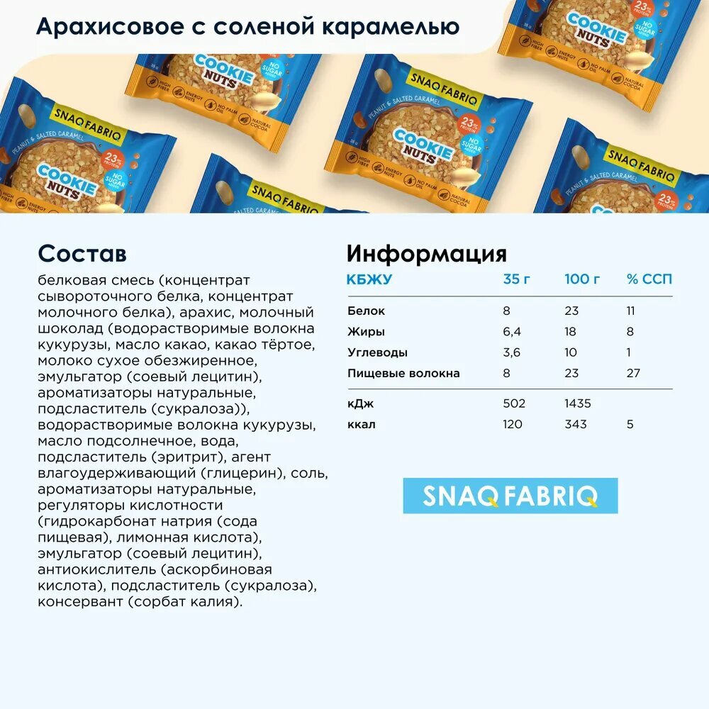 Печенье SNAQ FABRIQ Cookie Nuts, Арахис с соленой карамелью (12шт по 35г) информация: