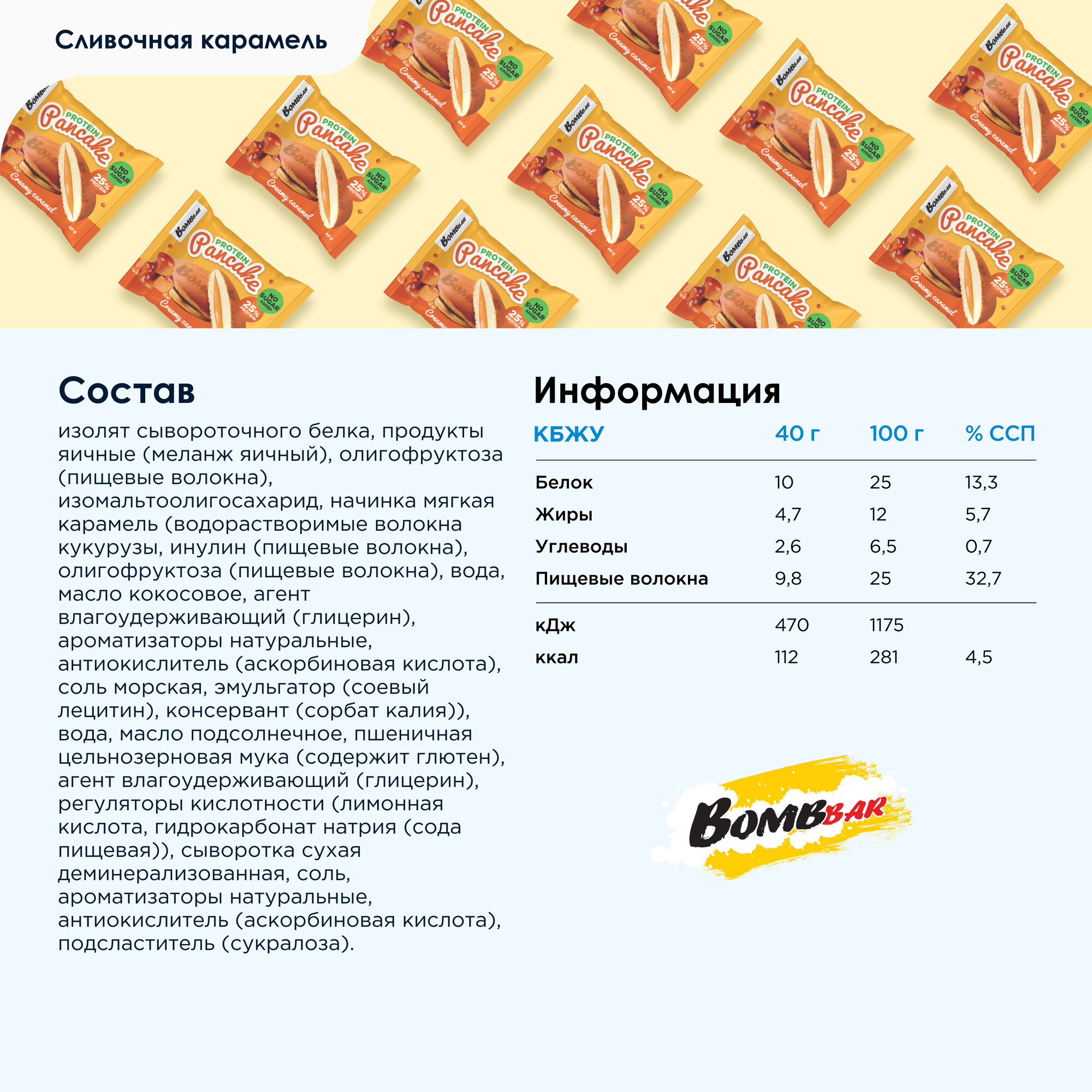 Bombbar Protein Pancake Протеиновые панкейки с начинкой без сахара "Сгущенка", 10шт х 40г 787 ₽