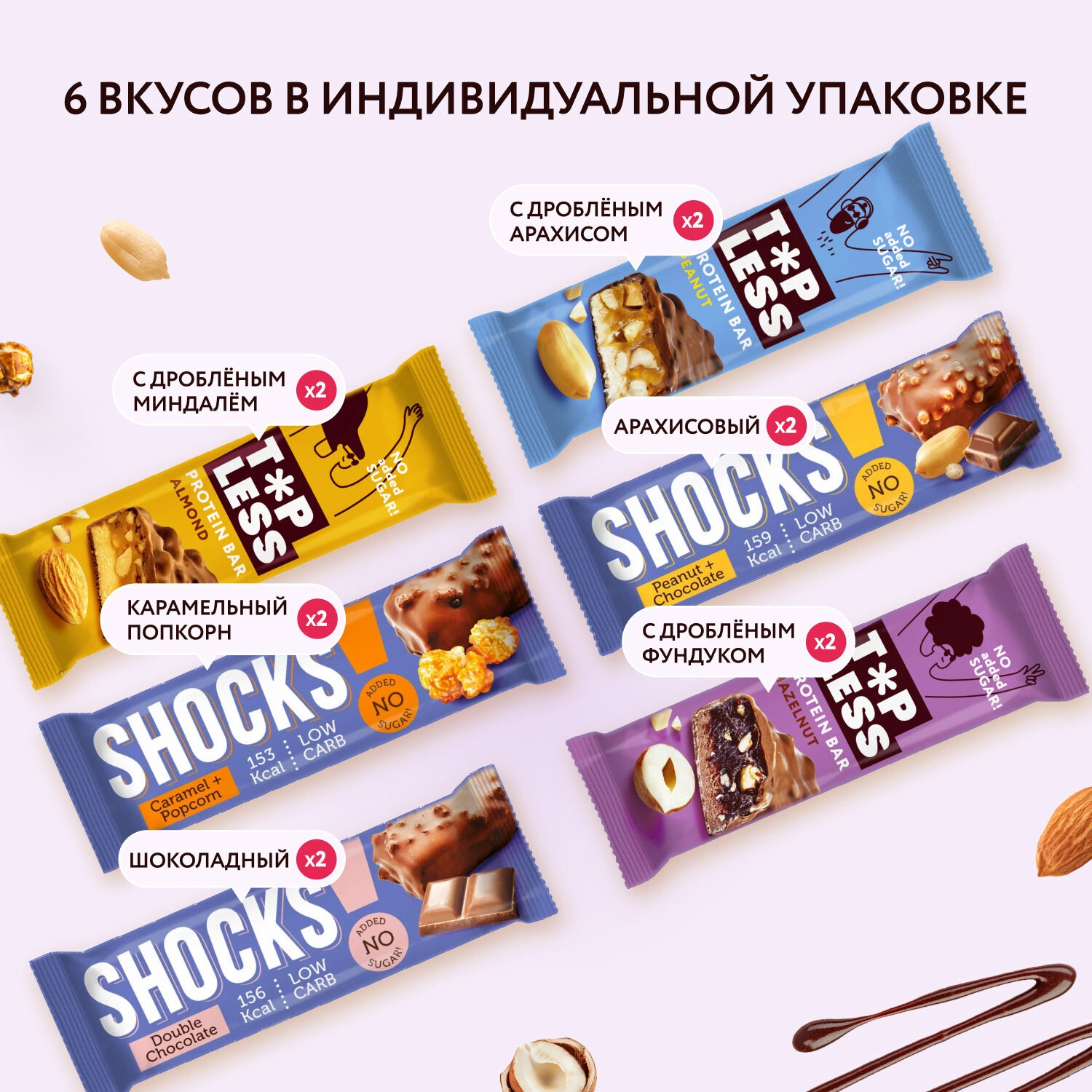 Ассорти батончиков MOOD NUTS FitnesSHOCK протеиновые батончики, шоколадные батончики 12шт информация: